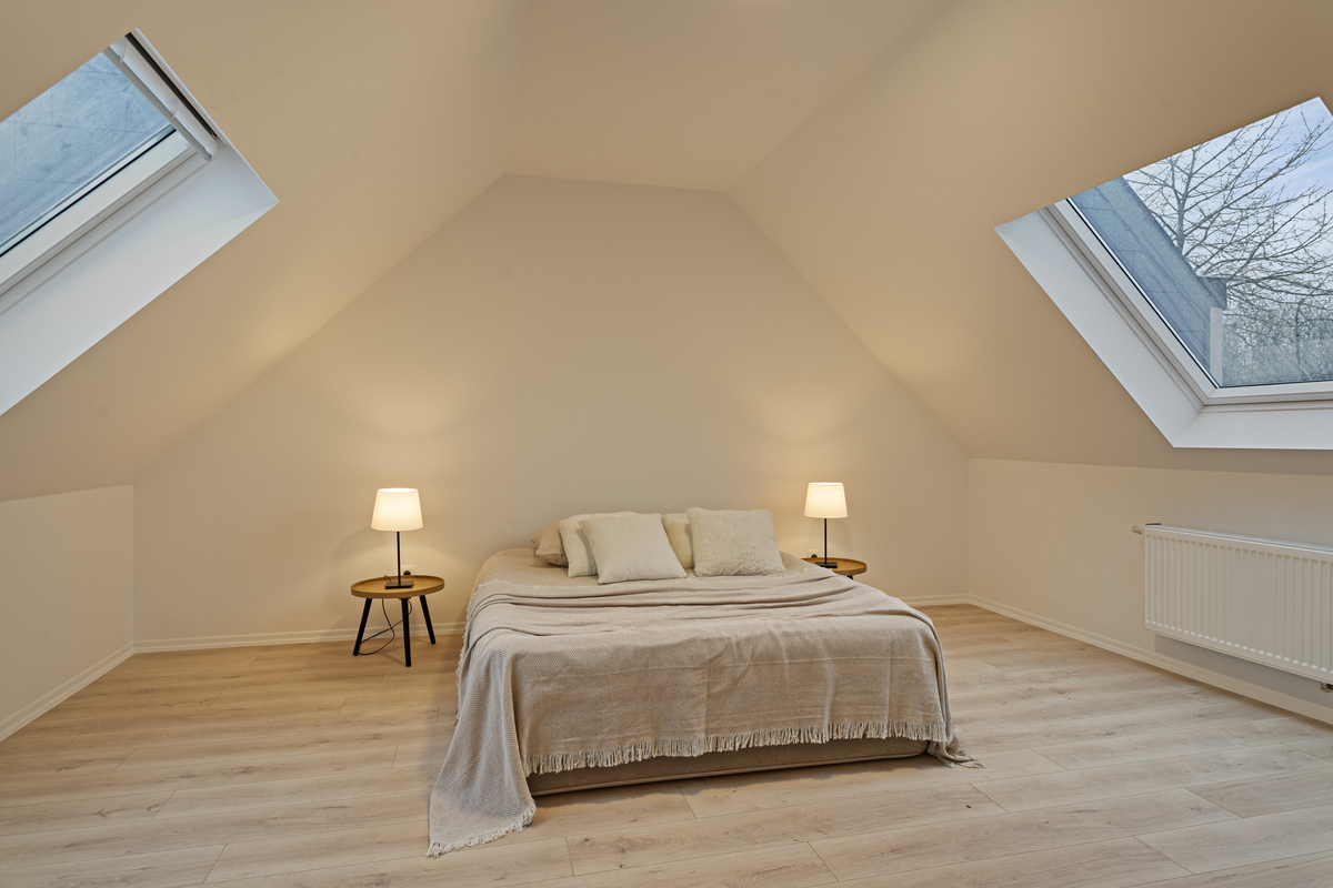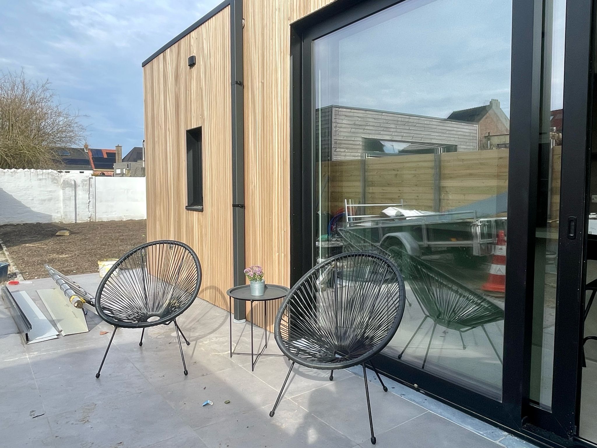 Interieur, exterieur, dak en tuin.